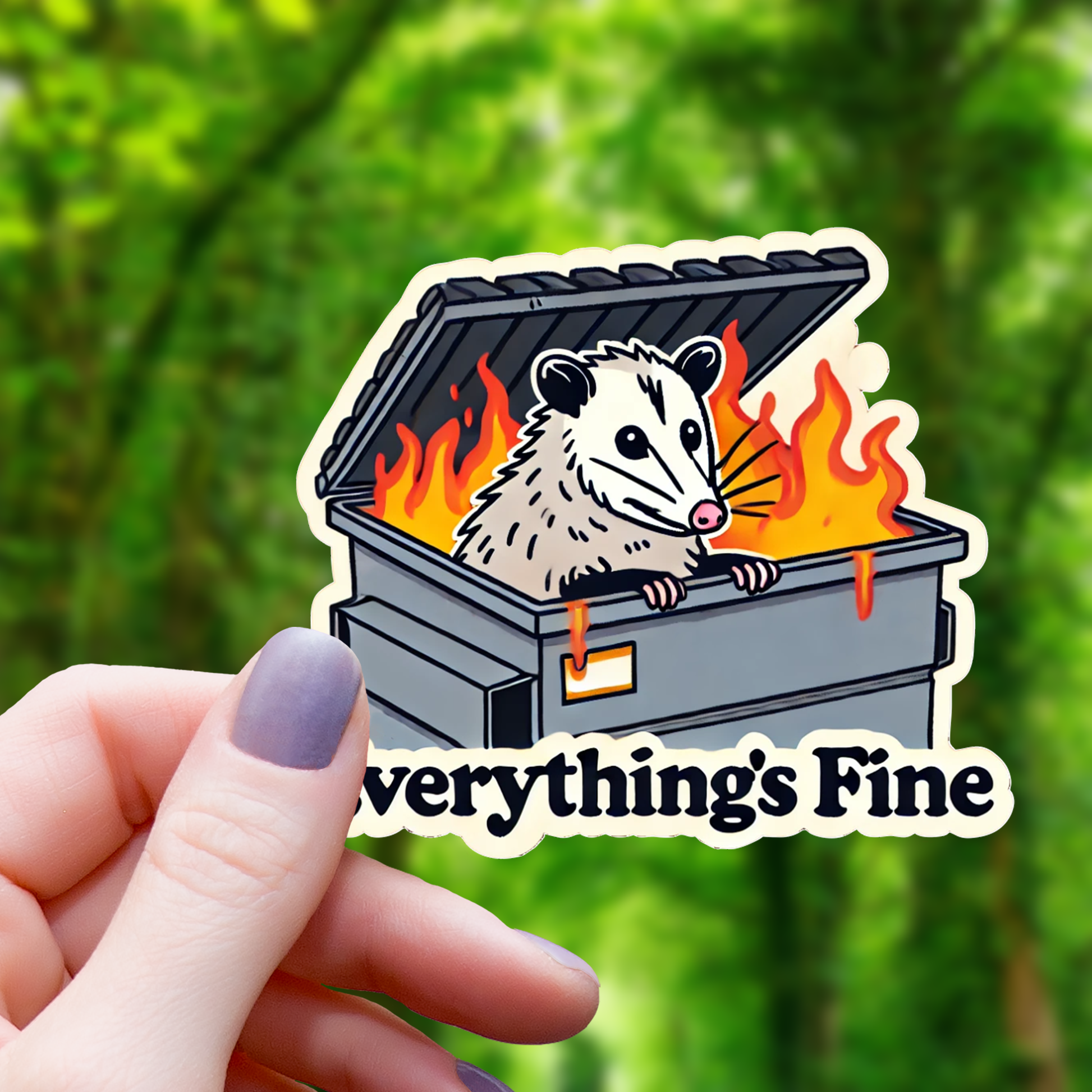 Everything's Fine Opossum Sticker - 3"