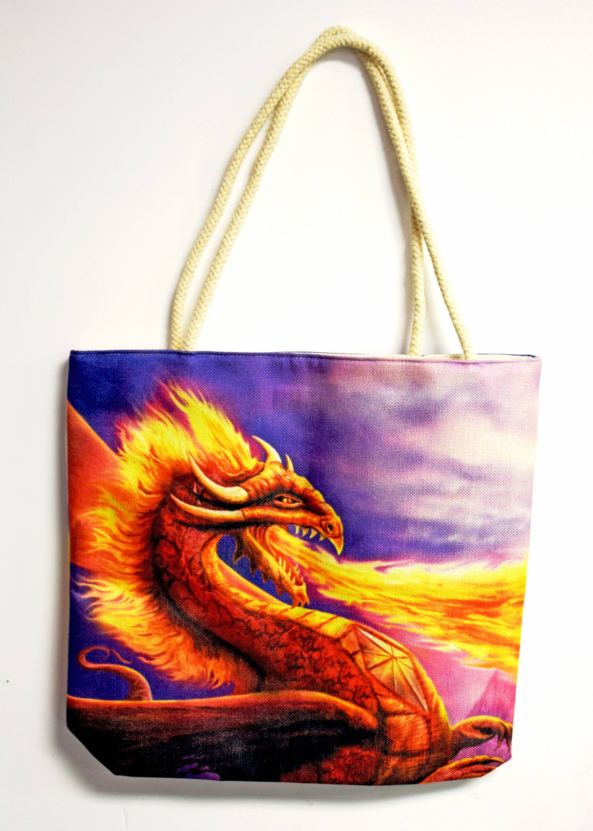 Fire Dragon Techno Jute Tote Bag 17 x 15 x 4.5 inches Thick soft rope handles.