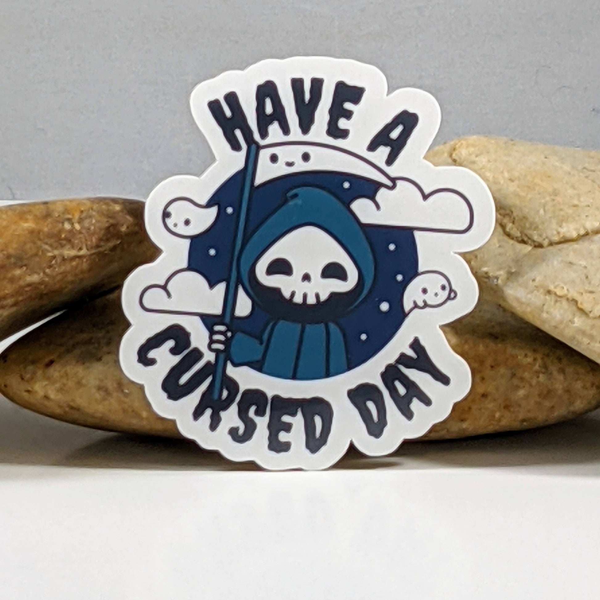Have A Cursed Day Grim Reaper Chibi Sticker - 2.5"